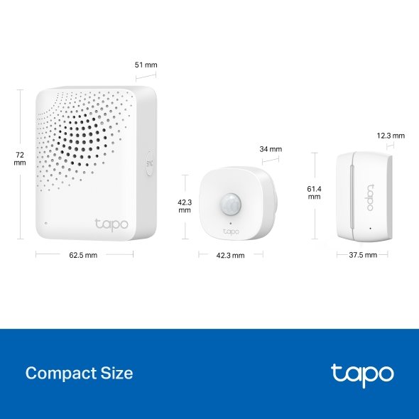 Sada chytrých senzorů – hub, detektor pohybu a detektor otevřených oken a dveří. Senzor pohybu pro automatické spuštění světla, oznámení v aplikaci na neobvyklé události a při zaznamenání pohybu, kompatibilita se zařízeními Tapo.