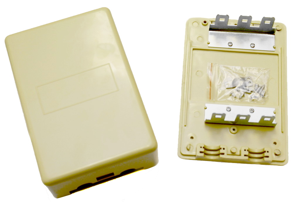 Box plastový určený pro až 3 ks svorkovnic typu "KRONE" osazený držákem