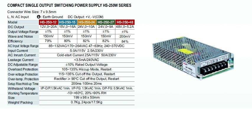 Carspa HS-250-24 průmyslový zdroj spínaný 24V 250W