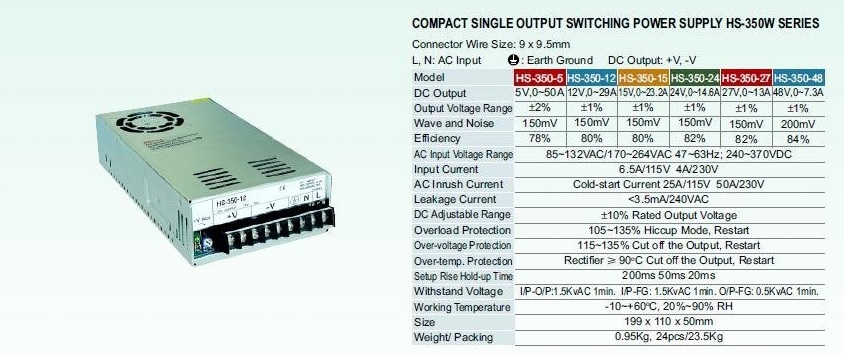 Carspa HS-350-48 průmyslový zdroj spínaný 48V 350W