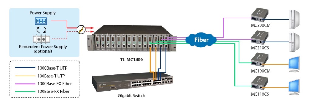 • Case TP-Link TL-MC1400 14-Slotové šasi pro media KONVERTORY VERZE 2.0 (9V)