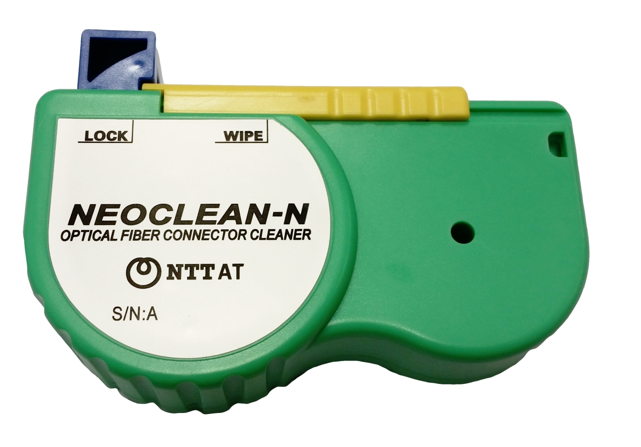 Čistič ferulí s otočnou vnitřní kazetou. Čelní strana ferule se očistí lehkým přitlačením a pohybem na čistícím pásku, stlačním tlačítka dojde k posuvu pásky.