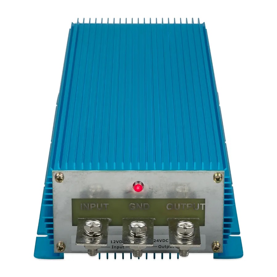 Výstupní napětí tohoto modelu s GO je možné nastavit pomocí potenciometru. Tento konvertor se používá pro nabíjení 24 V baterií z 12 V systému.