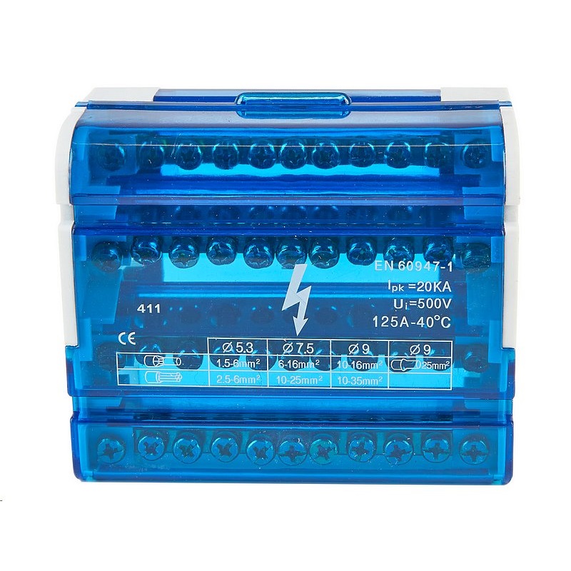 Distribuční nebo také nazývaný rozvodný blok umožňuje rozdělení napájení do různých obvodů. Umožňuje také separaci fázových obvodů a použití kabelů s různými průměry.