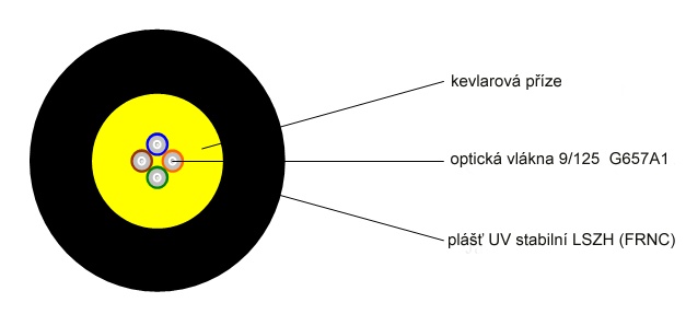 Plášť: FRNC (LSZH), voděodolný, UV resistant