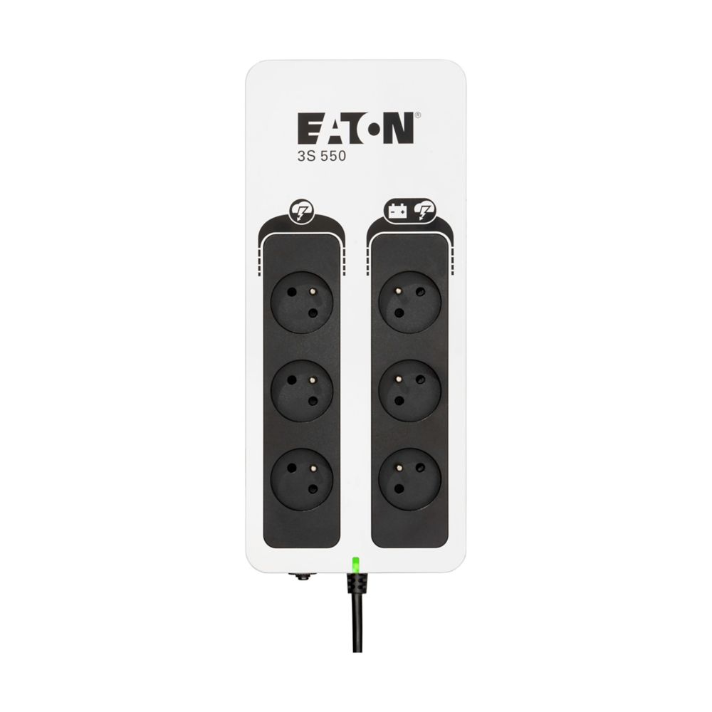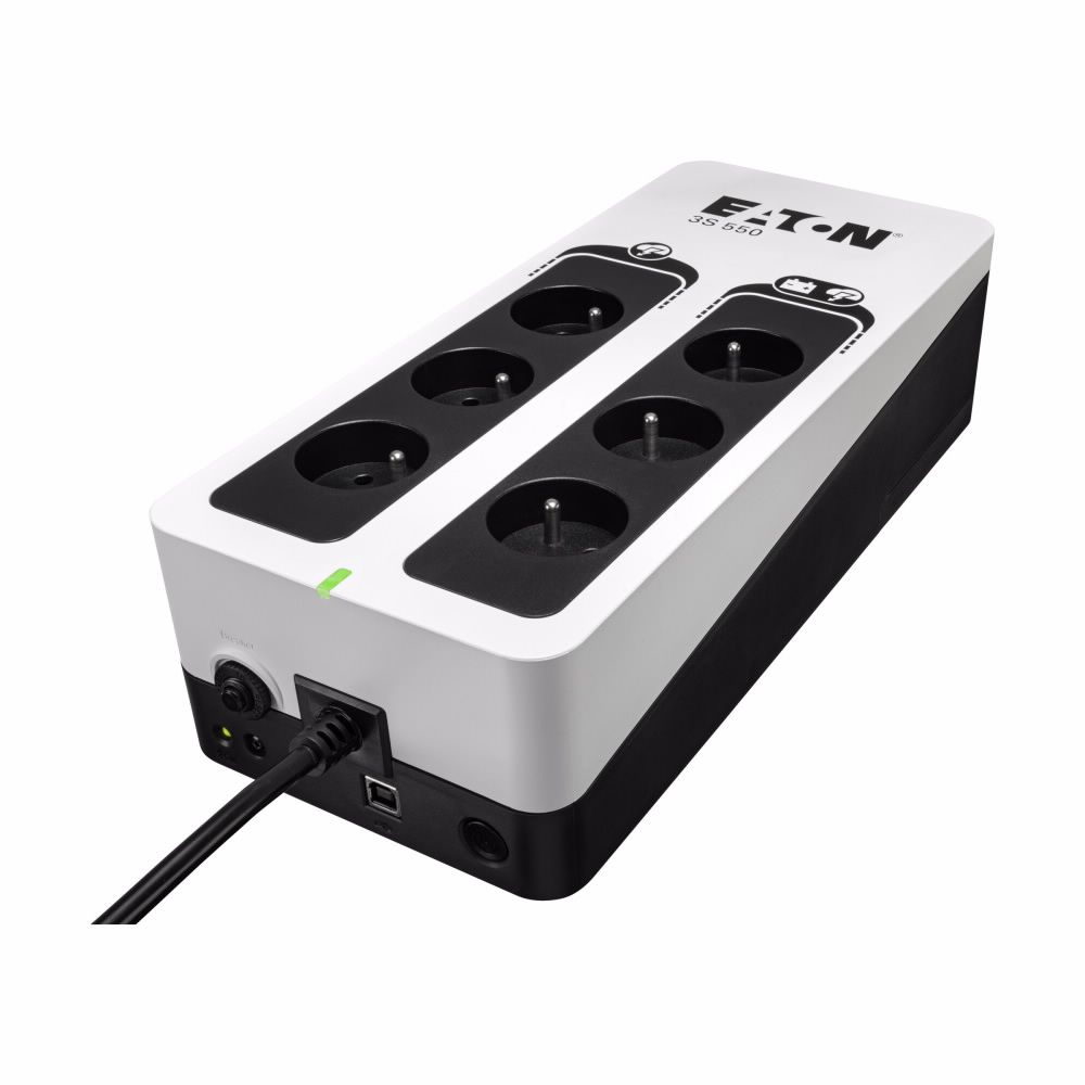 UPS Eaton 3S pomáhá chránit vaši výpočetní techniku v případě výskytu nežádoucích jevů a událostí, jako jsou atmosférické výboje, bouřky, přetížení rozvodné sítě, poruchy a živelné události, způsobující bez předchozího varování výpadky napájení z elektrorozvodné sítě. Při úplném výpadku poskytuje UPS záložní napájení z baterie až třem z šesti připojitelných zařízení. Díky atraktivnímu designu a líbivé povrchové úpravě UPS 3S dokonale zapadne do moderního kancelářského prostředí.