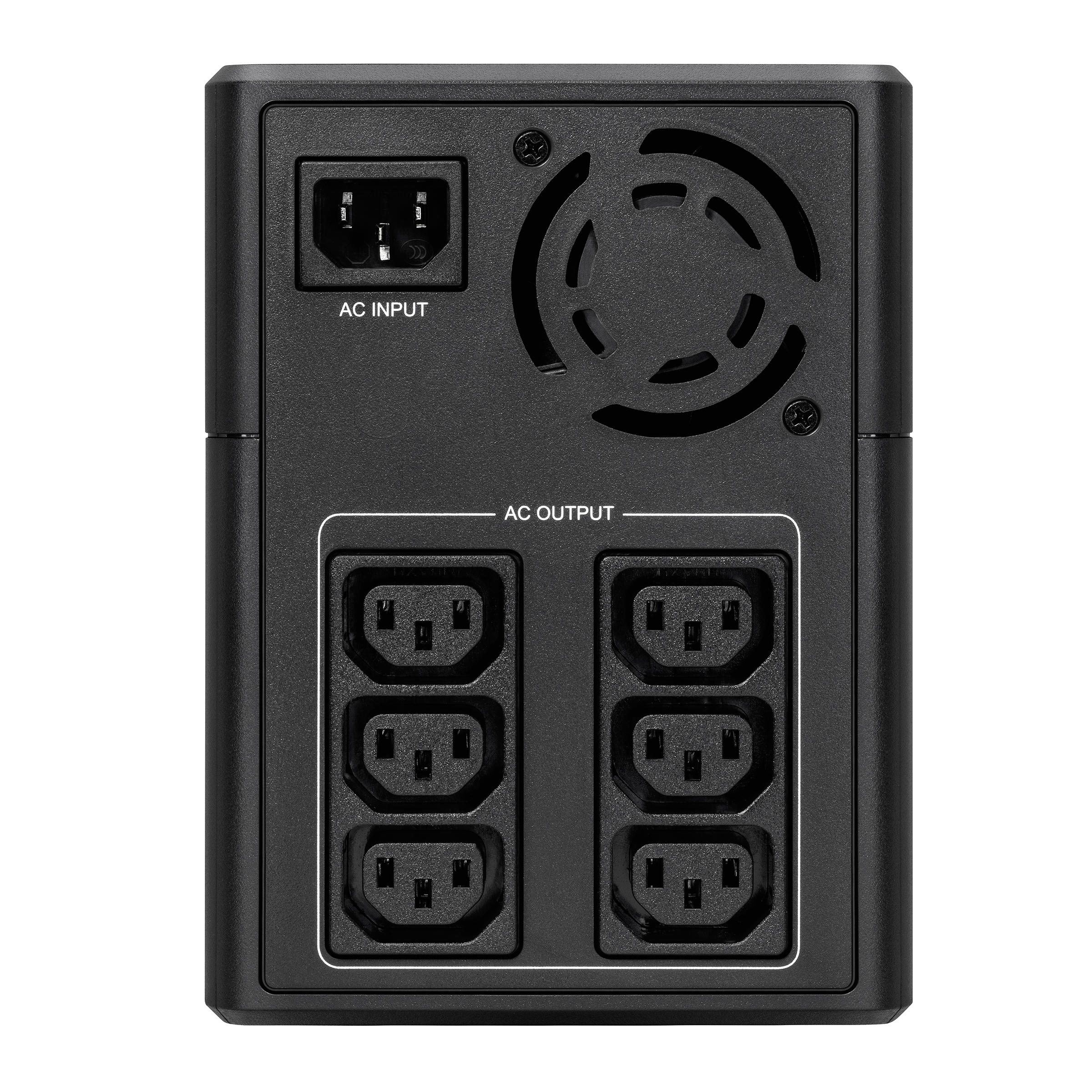Output connection (IEC models) 550-900VA -  4 IEC C13 outlets, 1200 - 2200VA -  6 IEC C13 outlets