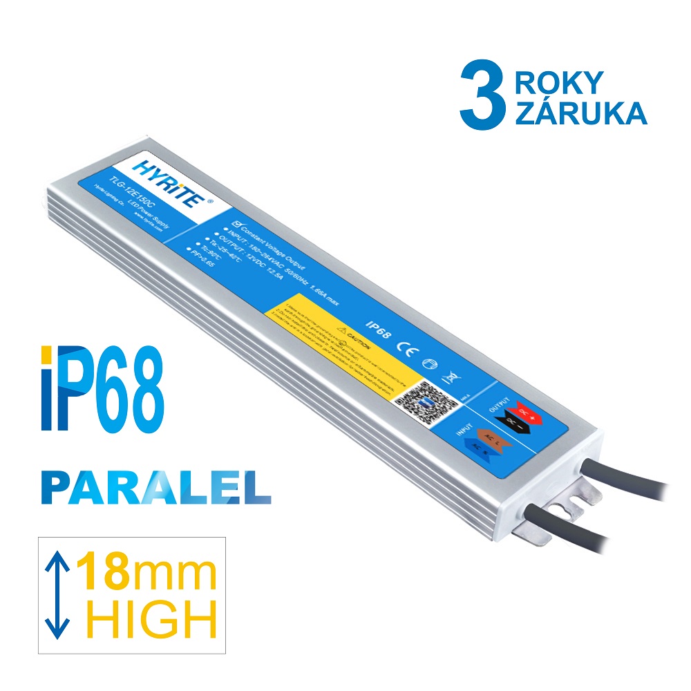 • HYRITE napájecí zdroj TLG-12E150C, 12V 12,5A 150W pro LED, IP68, výška 18mm