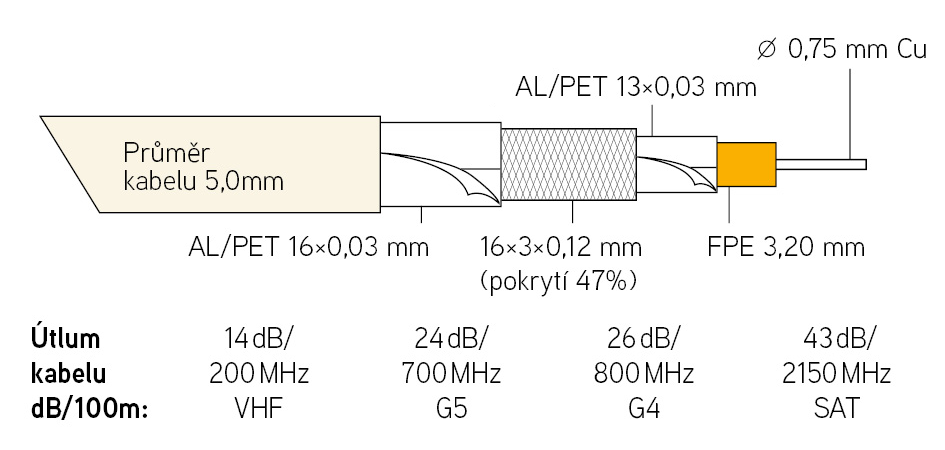Kabel KOAX KH-4U/48FTS na cívce 100m, PVC bílá 5,0mm