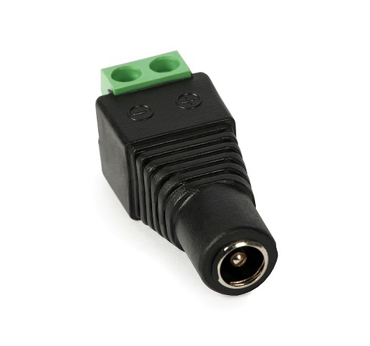 Napájecí konektor se svorkovnicí pro zdroj, napájecí koncovka pro 12V a 24V DC, zásuvka ze zdroje pro výstup napájení pro kabelové rozvody, rozebíratelná svorkovnice, značená polarita.