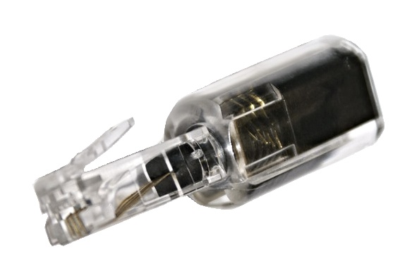 Otočný konektor pro sluchátkové kroucené šňůry RJ10 4/4 černý .  Zajistí nepoškození a sukování kroucených šňůr
