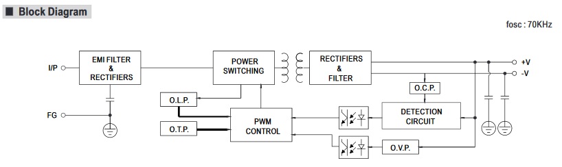 Vstupní napětí : 90 VAC to 264 VAC, 127 VDC to 370 VDC