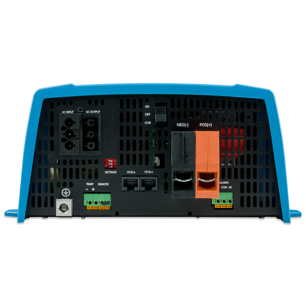 Měnič obsahuje robustní toroidní transformátor, který prokazuje svou spolehlivost v měničích Victron Energy již po mnoho let. Měniče jsou odolné proti zkratu a chráněný proti přehřátí, ať už v důsledku přetížení nebo
