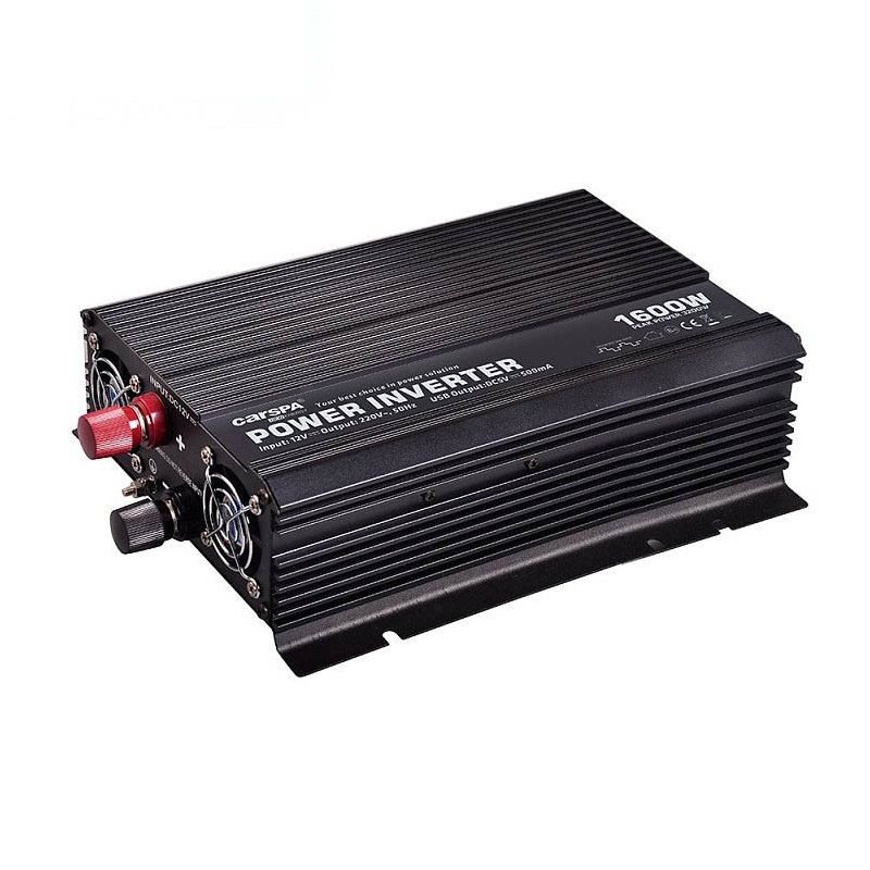 Měniče Carspa jsou jedny z nejpopulárnějších zařízení na trhu. Měnič transformuje stejnosměrný proud z 12V baterie na střídavý proud 230V. Díky tomu můžete používat své oblíbené spotřebiče např. nabíječky kamer, foťáků, mobilních telefonů, tabletů, notebooků a jiných zařízení až do výkonu 1600W i v místech, kde není dostupná rozvodná elektická síť a jde tak o ideální řešení na cesty. Vhodný i pro rychlovarné konvice nebo mikrovlnné trouby do výkonu 1600W.