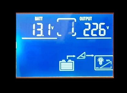 - LCD displej zobrazuje provozní a chybový stav (vstupní napětí, výstupní napětí, výstupní výkon, úroveň kapacity baterií, úroveň zatížení, kód rozhraní a kód poruchy)