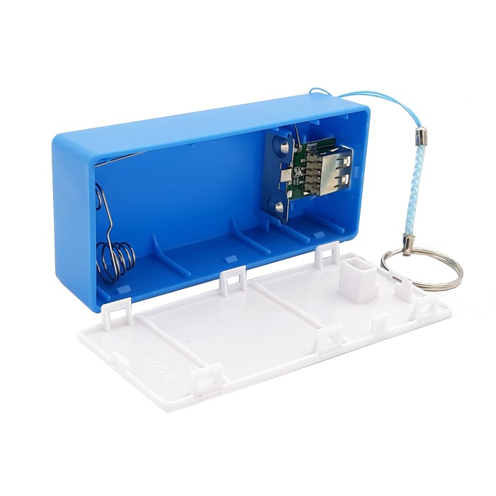 Nabíječka Li-Ion článků 18650 a powerbanka. Nabité články lze jednoduše vyjmout a použít v jiném zařízení. Nabíjecí automatika, optická kontrola stavu článku. Dodáváno bez nabíjecích článků. Specifikace: Vstup 5V/1A (Micro USB); Výstup 5V/1A (USB A);