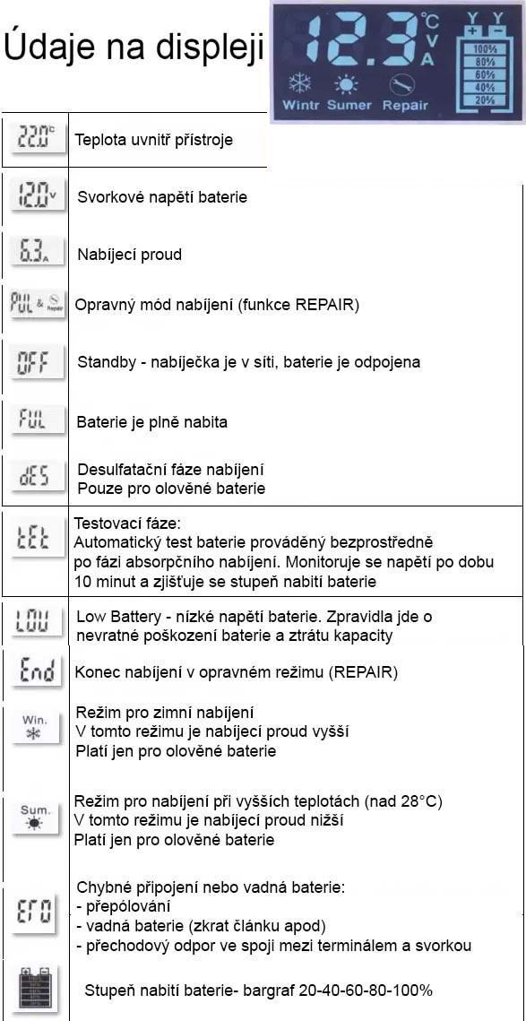 Automatická nabíječka Pb baterií proudem do 7A umožňující trvalé propojení s nabíjenou baterií. Je vybavená programem pro regeneraci baterií a volbou druhu baterie (AGM, AGM GEL,STANDARD,MOTO). 7stupňové automatické nabíjení.