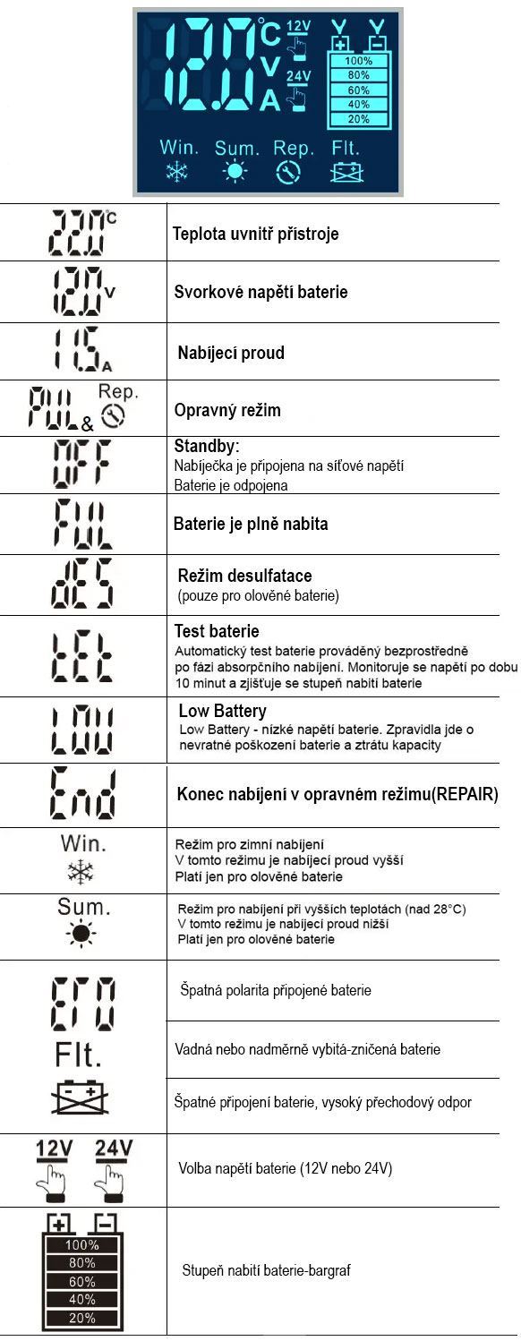 • Rozsah kapacity baterií: 6–180Ah (12V), 6–90Ah (24V)