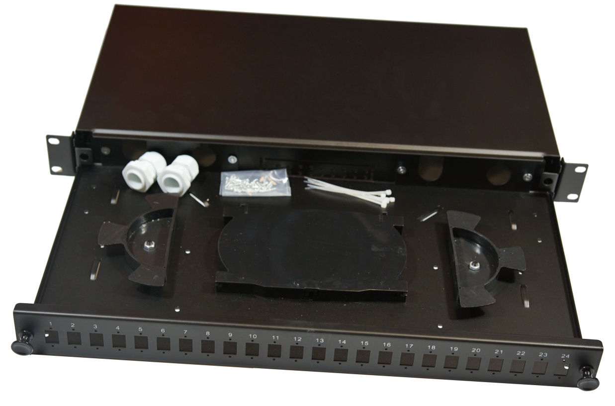 Optická vana výsuvná 19"  1U  pro 24x SC  (24x LC Duplex, 24x E2000)