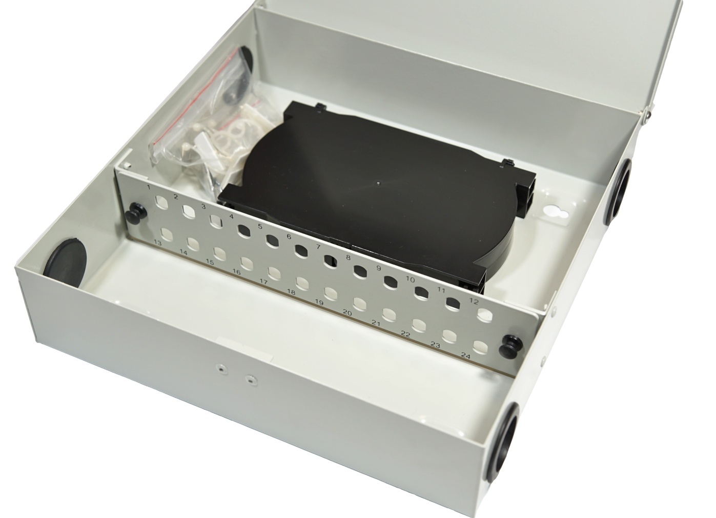 Optický rozvaděč nástěnný kov 24 ST vč. opt. kazety a zámku jednokřídlý