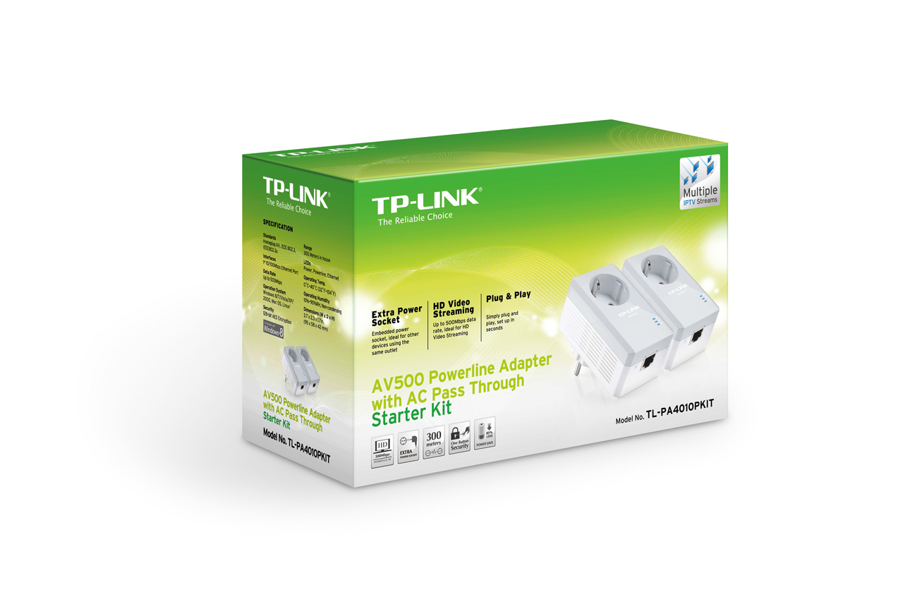 TP-LINK TL-PA4010P je průchozí zásuvka v provedení nano velikosti vybavená 1x RJ45 Ethernet LAN Port. Je určený pro zapojení do domácí elektrické sítě. Tento model se vyznačuje vysokou přenosovou rychlostí až 600 Mbps až na vzdálenost 300 metrů. Přenášená data lze šifrovat pomocí 56-bit DES šifrování.