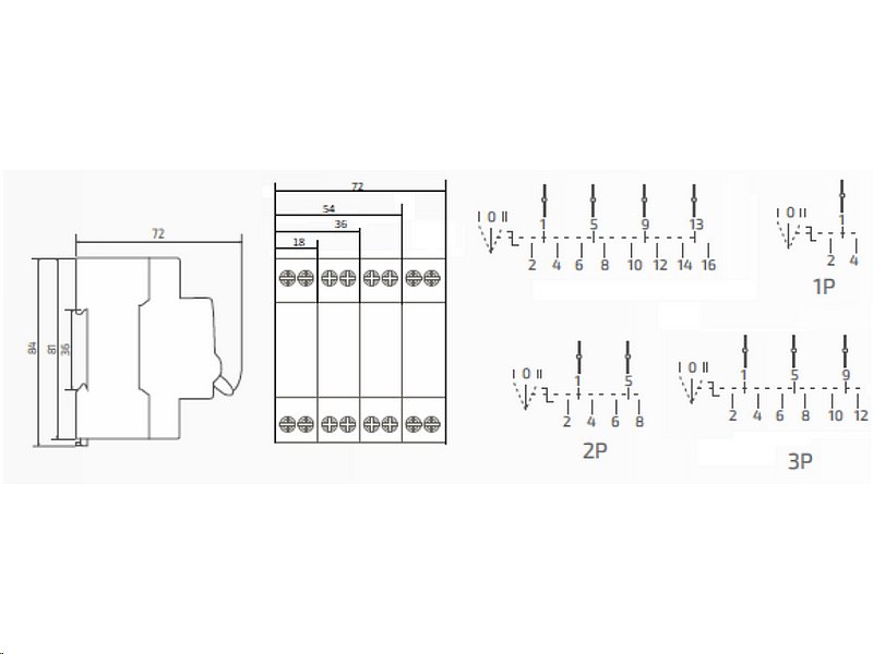 Provozní napětí této jednotky je 400 V AC, 50 Hz, zatímco izolační napětí je 690 V AC, rozměry přepínače 3P jsou 54 mm. Síťový spínač může sloužit buď jako jistič, nebo jako vypínač. Má schopnost přepínat z jednoho okruhu na druhý.