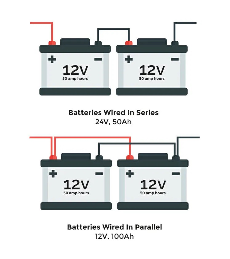 Propojovací kabely - 1x černý, 1x červený, zakončený očky na obou stranách je ideální k propojování baterií, měničů napětí, atd...se závitem M8. Propojením více baterií můžete zvýšit výstupní napětí (sériové zapojení) nebo celkovou kapacitu (paralelní zapojení).