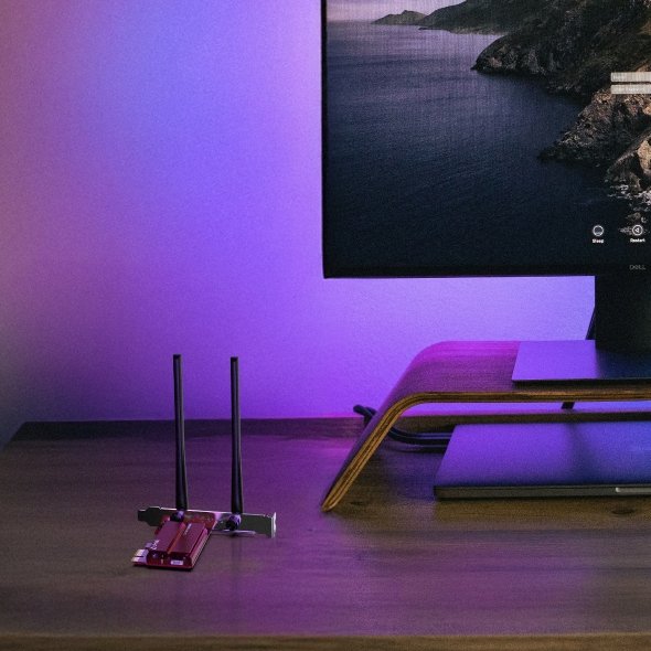 Síťová karta, 2 pevné a výkonné antény, třípásmové připojení - 2 882 Mbit/s v pásmu 6 GHz a 5 GHz a 688 Mbit/s v pásmu 2,4 GHz, Wi-Fi 7, MU-MIMO, OFDMA, Bluetooth 5.4, bezpečnostní standard WPA3.
