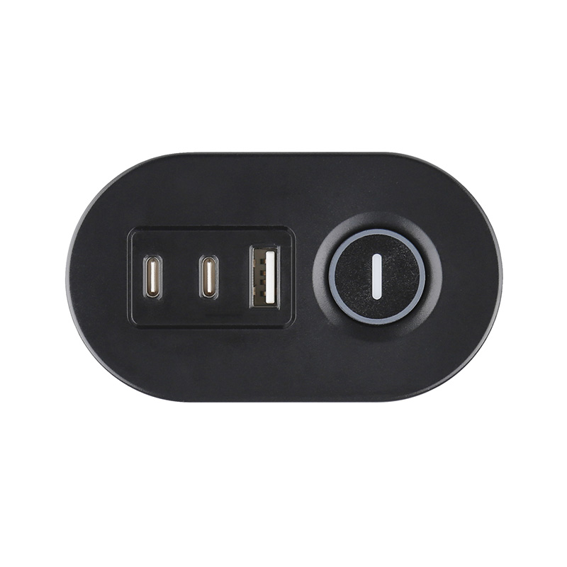 - centrální vypínač ovládá 230V i USB zásuvky
