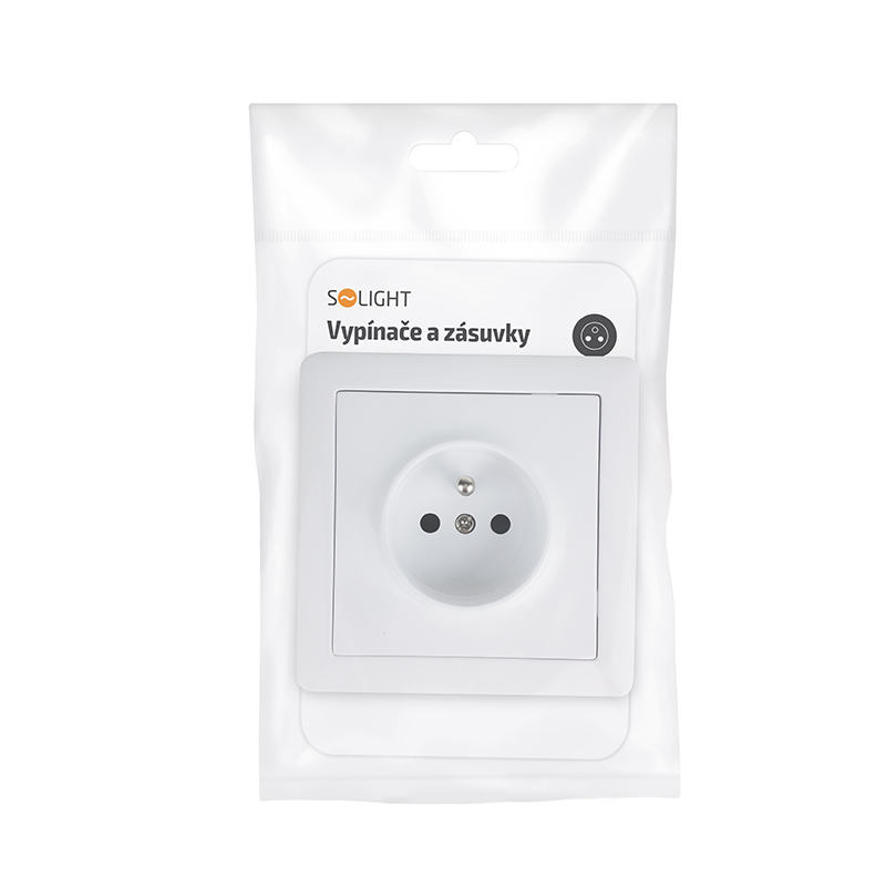 Jednoduchá zásuvka v provedení SLIM je klasickou zásuvkou pro domovní i kancelářskou elektroinstalaci. 230V/16A pod omítku. Barva bílá. Parametry produktu: - Krytí: IP20 - Barva: bílá - Napětí: 230V - Materiál: PVC - Výrobce: Solight - Max. prou