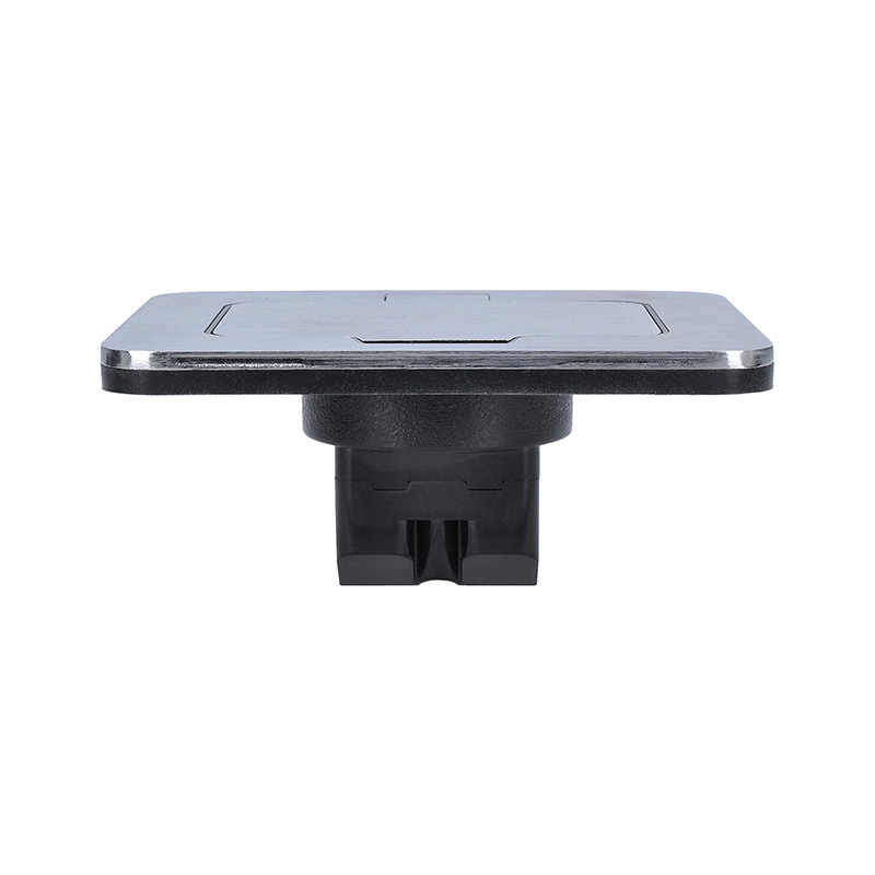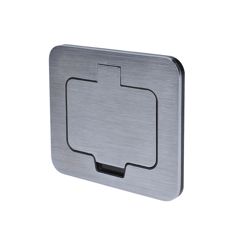 Vrchní kryt zásuvky je vyroben z odolné zinkové slitiny, která zajišťuje pevnost a zároveň ochranu proti korozi. Na povrchu nejsou viditelné žádné šrouby – montážní otvory zůstávají skryté pod víčkem. Díky tomu působí zásuvka elegantně a profesionálně a zároveň se snadno čistí.
