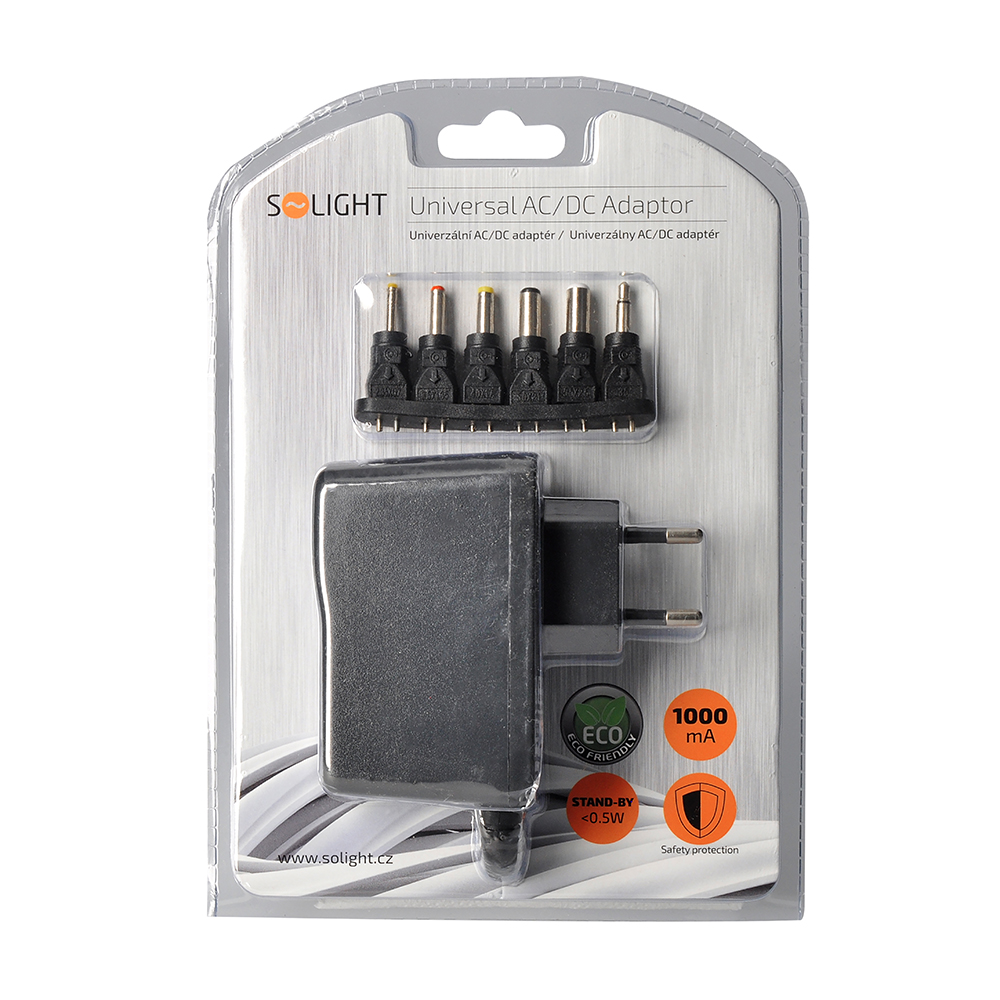 Solight univerzální síťový adaptér 1000mA, stabilizovaný, výměnné konektory