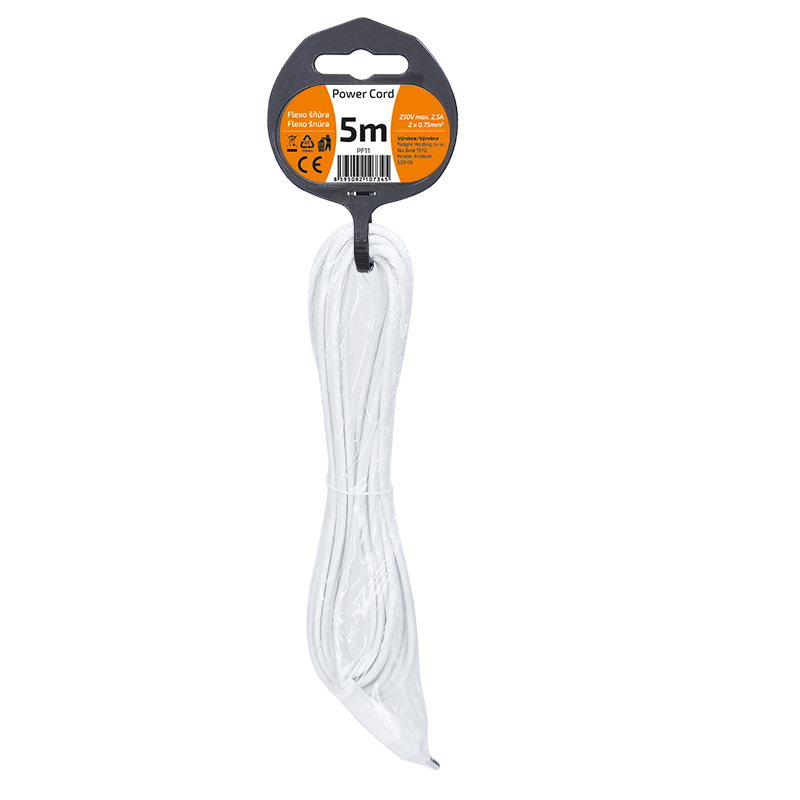 • Solight flexo šňůra, 2x 0,75mm2, bílá, plochá, 5m