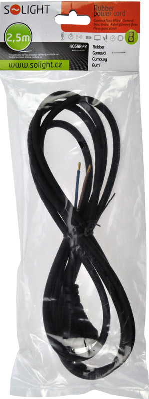 • Solight flexo šňůra, 2x 1mm2, gumová, černá, 2,5m