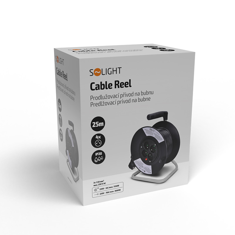 Solight PB01 prodlužovací přívod na bubnu, 4 zásuvky, 25m, černý kabel, 3x 1,5mm2