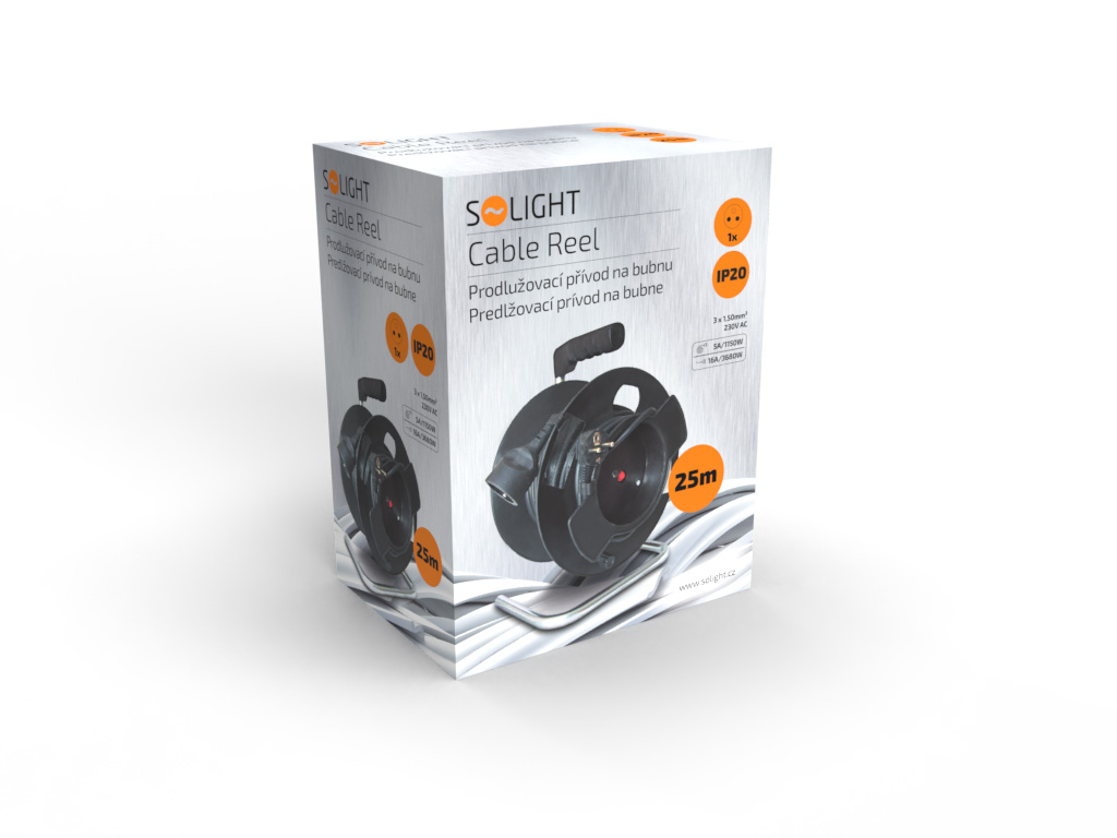 Solight PB11 prodlužovací přívod na bubnu, 1 zásuvka, 25m, černý kabel, 3x 1,5mm2