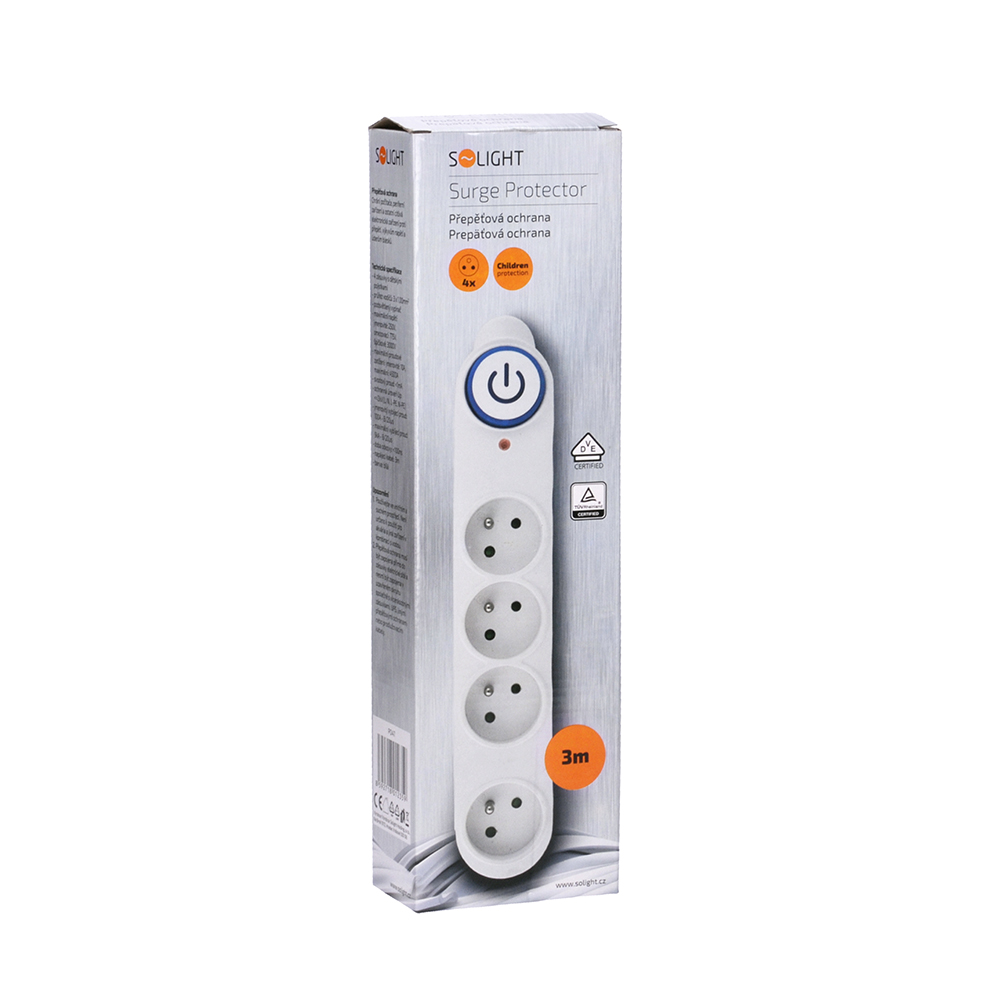 Solight PO47 přepěťová ochrana, 150J, 4 zásuvky, 3m, bílá