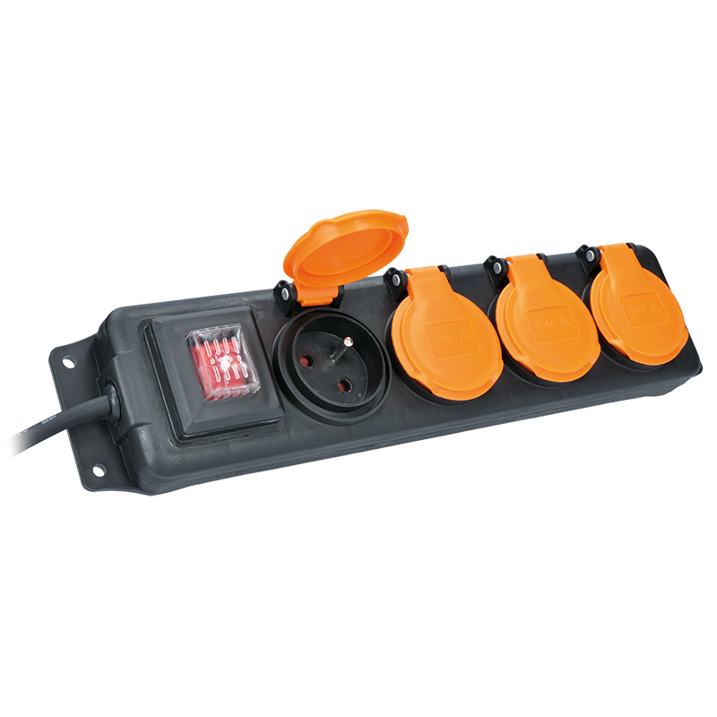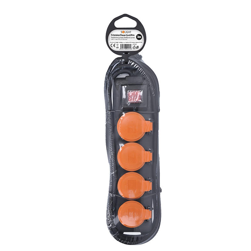 Solight prodlužovací přívod IP44, 4 zásuvky, vypínač, venkovní, 3m
