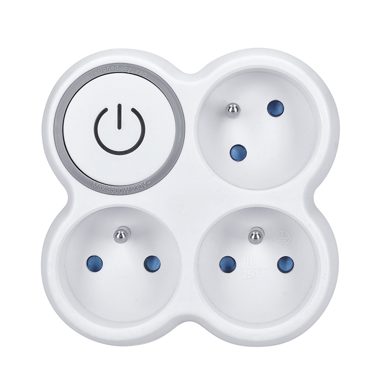 Solight rozbočka, 3x 10A, bílá-šedá, vypínač