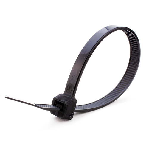 Stahovací páska 2,5x150mm černá, plast, 1ks; Specifikace: Délka: 150 mm; Šířka: 2,5 mm; Pracovní teplota: -40C až +85C. Materiál - polyamid 66 (výrobce Dupont and Solutia,USA); Odolné vůči UV záření; Balení: 1ks; Barva: černá