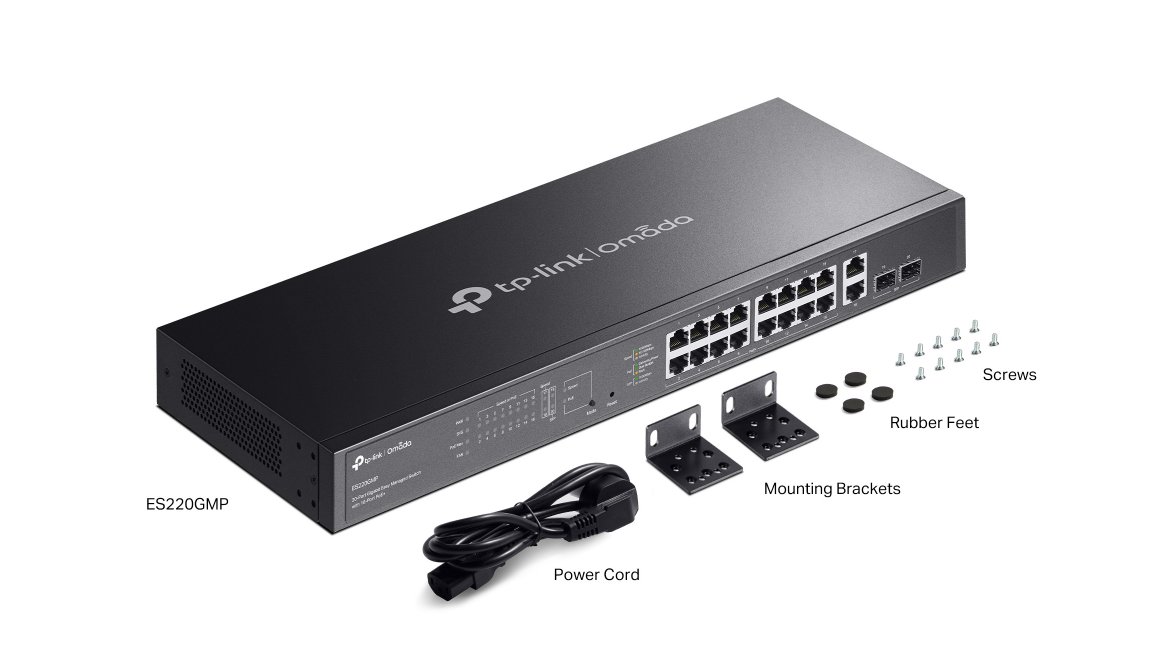 Switch TP-Link ES220GMP využijete v kanceláři, pro maloobchod, univerzitní areál či pohostinství. Zajistí vám vysokorychlostní a spolehlivé spojení s dalšími switchi a zařízeními. Najdete na něm celkem 16 gigabitových portů PoE+ portů, 2 gigabitové RJ45 porty a 2 gigabitové SFP/RJ45 combo porty. Jejich celkový rozpočet je 250 W, na každý port pak připadá až 30 W.