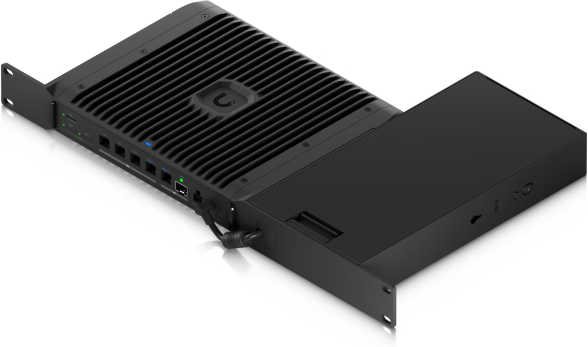 Ubiquiti UACC-UCG-Industrial-RM slouží pro uchycení (1) UniFi Cloud Gateway Industrial (UCG-Industrial) do 19" rozvaděče. Na delším úchytu nechybí praktický držák pro napájecí adaptér.