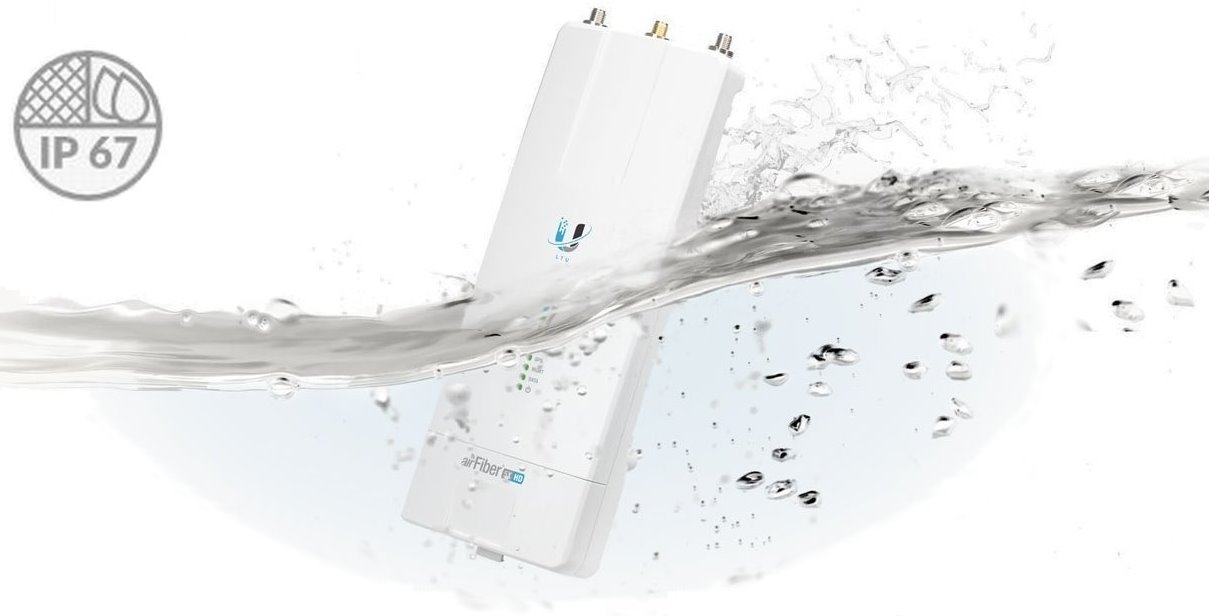 AirFiber 5XHD je díky velmi dobré konstrukci a přiloženému gumovému adaptéru odolný vůči vodě a je ideální pro jakékoli povětrnostní podmínky.