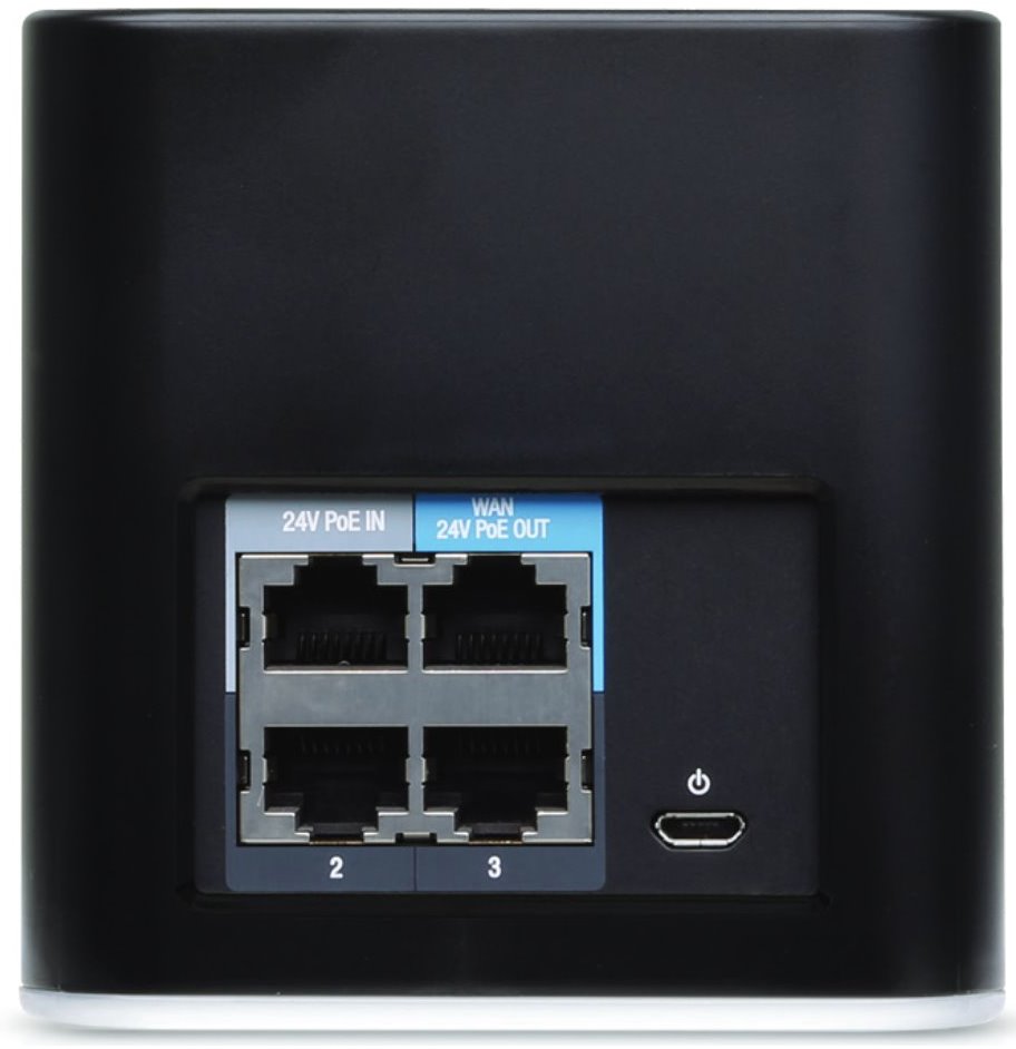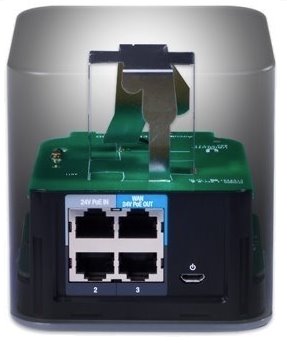 Napájení routeru je možné řešit jak přes napájecí adaptér, který není součástí balení, tak i pomocí 24V pasivního injektoru zapojeného do portu LAN, čímž bude možné napájet i venkovní jednotku jako např.: Loco, PowerBeam, NanoBeam a jiné klientské jednotky.