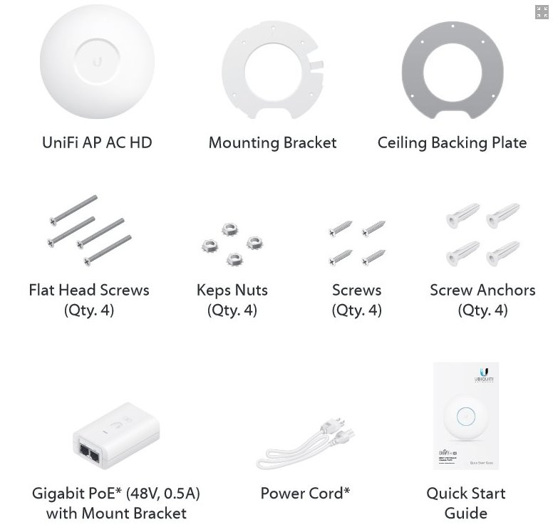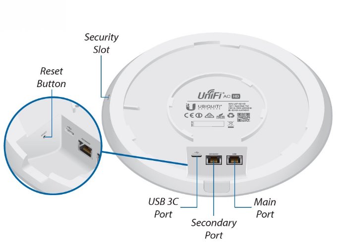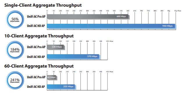 Ubiquiti UniFi AC HD je 802.11ac UAP zařízení. Jedná se o 4x4 MU-MIMO 2,4GHz i 5GHz Acess Point s rychlostí přenosu až 1733+800 Mbps a podporou norem 802.11a/b/g/n/ac/ac-wave2. Toto UAP je určeno například pro kanceláře, hotely, sklady a díky vysokému výkonu se hodí do míst, kde se předpokládá velký počet připojených zařízení. Anténní systém obsahuje dvě vestavěné dualband 3 dBi antény (2,4GHz) a dvě vestavěné dualband 4 dBi antény (5GHz) a s dosahem do vzdálenosti až 122 metrů. Plně podporuje také roaming pro předávání asociovaných klientů mezi jednotlivými AP. Co se konektorů a napájení týče UAP-AC-HD obsahuje 1x USB 3C port a 2x Gigabit LAN, z nichž 1 podporuje 48V (44 až 57V) napájení přes PoE (pasivní i aktivní 802.3at).