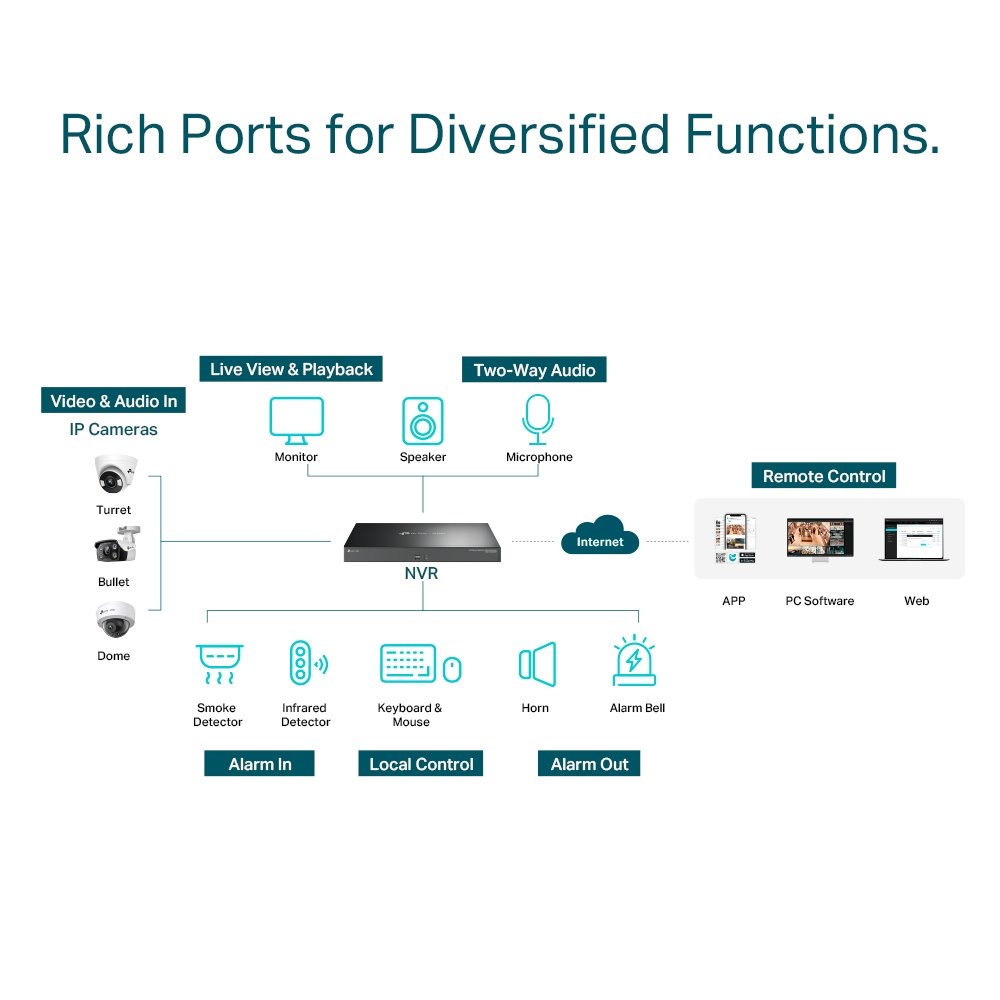 Síťové 32kanálové záznamové zařízení TP-Link VIGI NVR4032H slouží pro nepřetržité nahrávání videí 24 hodin denně po celých 7 dní v týdnu. Váš majetek, nemovitost i pozemek zůstanou v bezpečí a bude vždy monitorovaný. Zařízení podporuje mobilní aplikaci VIGI, která je vhodná pro vzdálené sledování dění, pro kontrolu uložených záznamů a pro správu kamer.